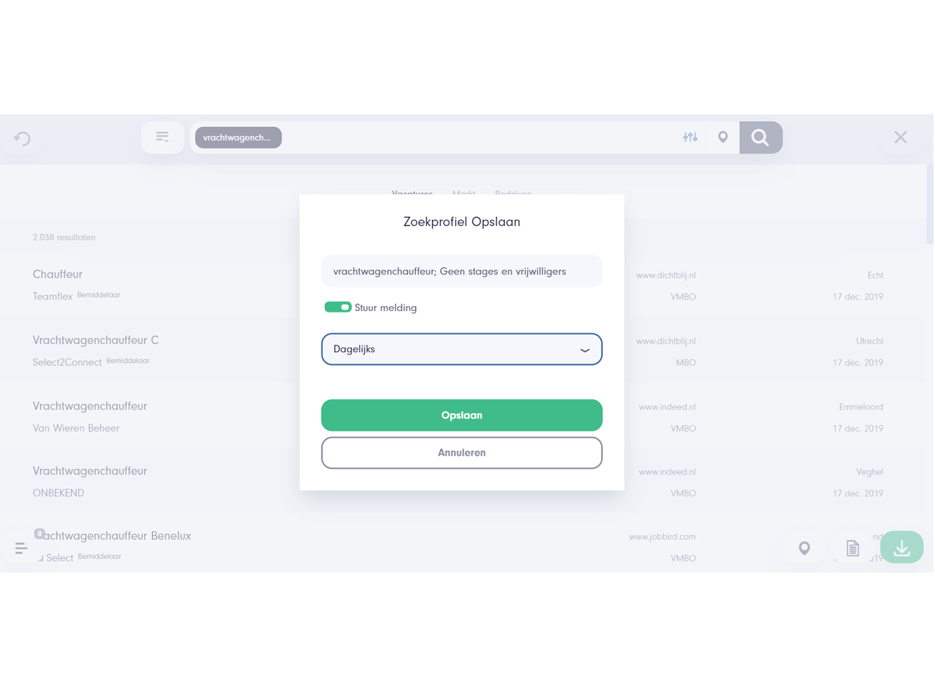 Travaillez plus efficacement en acquérant une meilleure connaissance du marché de l’emploi. Grâce à des tableaux de bord clairs, Jobdigger Insights vous montre à quoi ressemble le marché de l’emploi dans votre zone de recherche. Suivez les tendances et réagissez aux évolutions du marché.